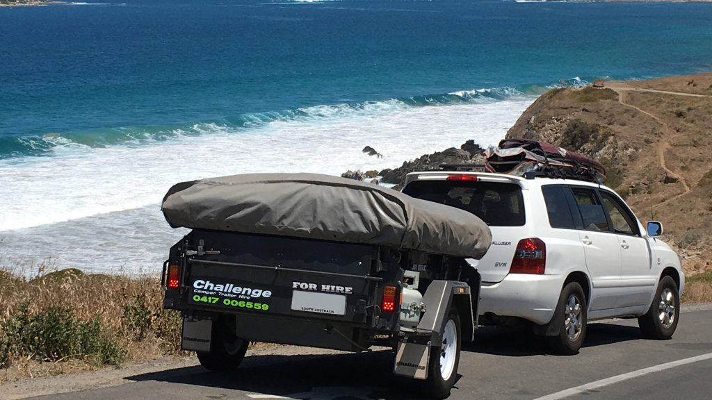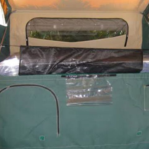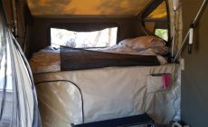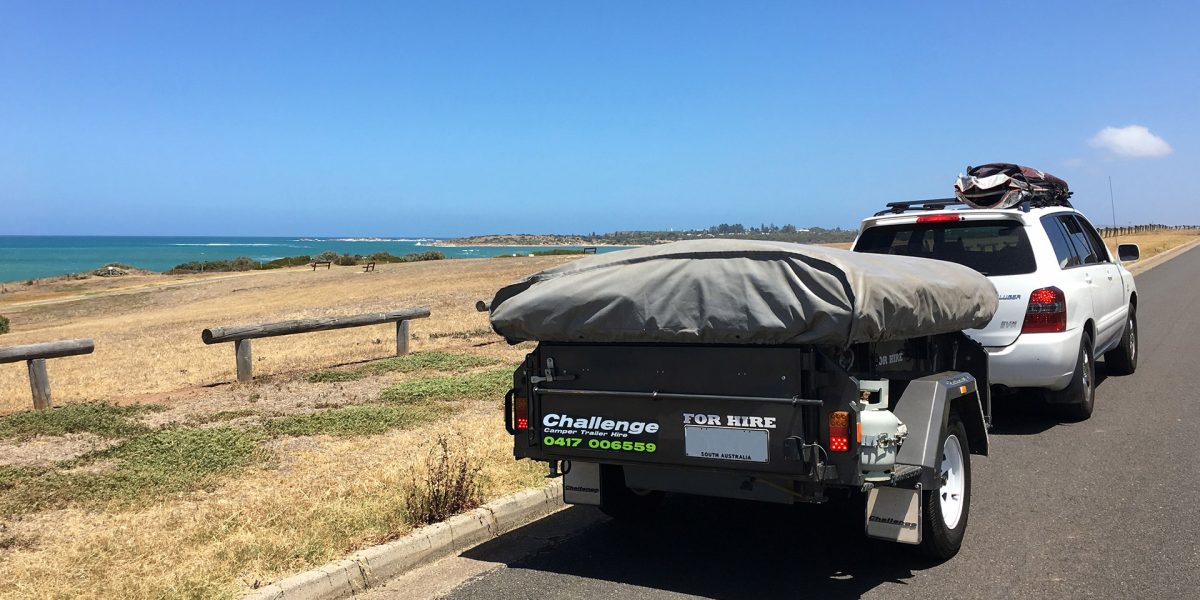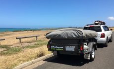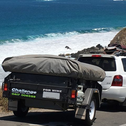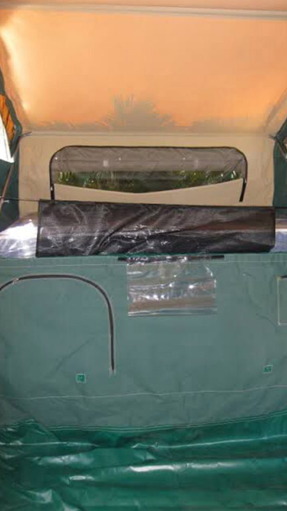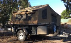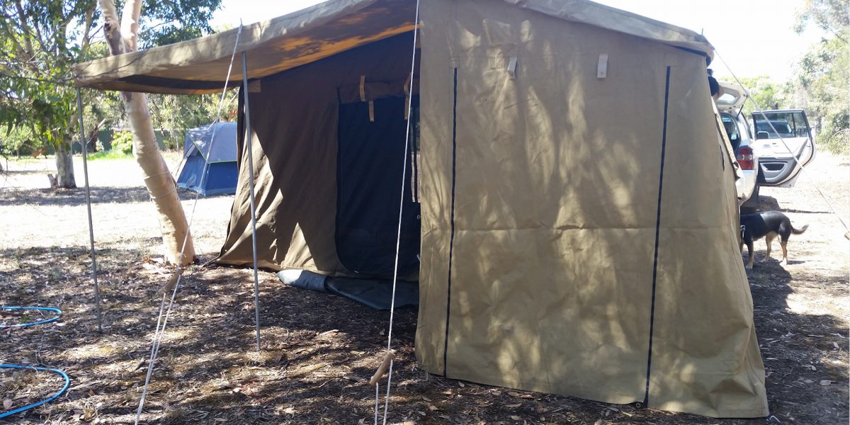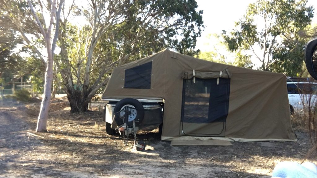 Each camper trailer also has an optional awning for the kitchen area, with sides to enclose you in during inclement weather. All camper trailers, but one, have off-road tyres, designed to easily handle your adventure wherever you go. The tents are made from heavy-duty canvas, with a sealed vinyl floor and fully enclosed fly-screen windows and doors for ventilation.